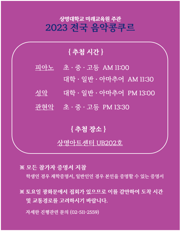 - [음악학] 2023 전국 음악 콩쿠르 안내